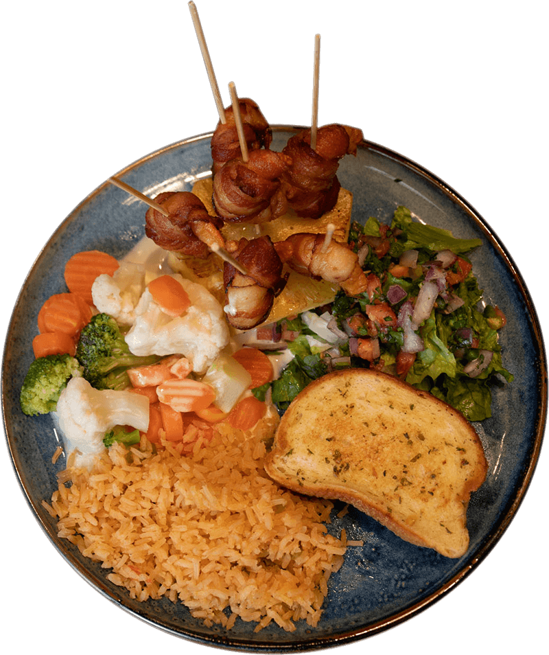 All fajitas are served on a sizzling hot skillet with sautéed onions and